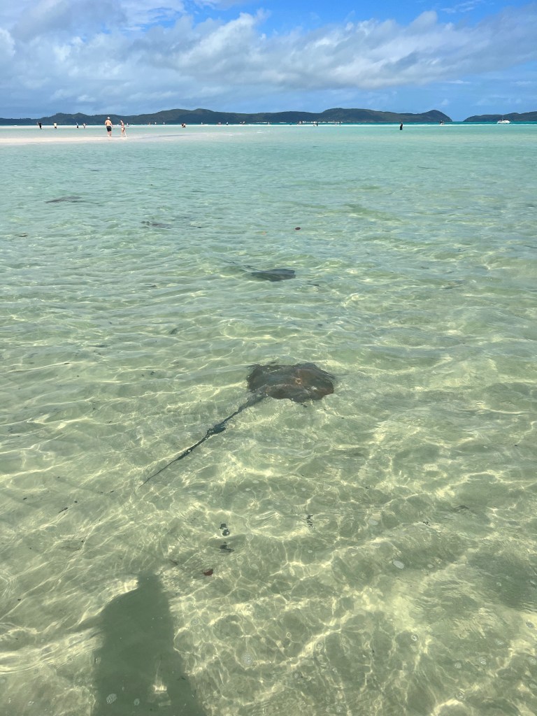 Die Whitsundays ist eine Inselgruppe an der Ostküste von Australien und befindet sich in der Nähe des Great Barrier Reefs. Ursprünglich hatten wir eine zweitägige Tour mit einer Übernachtung auf einer Anlage auf dem Wasser geplant. Bei dieser Tour hätte man dann unter freiem Sternenhimmel übernachtet und Ausflüge unternommen. Wenige Tage vor der Tour wurde diese jedoch abgesagt. Anscheinand gab es einige Unstimmigkeiten zwischen den Arbeitgebern und Arbeitsnehmern. So mussten wir uns ein Alternativprogramm überlegen. Wir entschieden uns für eine ganztägige Tour, bei welcher man Schnorcheln und den Whitehaven Beach besuchen konnte. Grundsätzlich war die Tour ganz okay, aber auf dem Boot, auf welchem man rund 3 Stunden verbrachte, konnte man nicht wirklich die Aussicht geniessen, das Regenblachen montiert waren. So waren die Fahrten jeweils etwas langweilig und nur das Schnorcheln beim Great Barrier Reef und der Strand boten Abwechslung. Leider war das Schnorcheln beim Great Barrier Reef nicht so eindrücklich, wie wir uns dies vorgestellt hatten. Dies lag einerseits daran, dass man mit einer Schnorchel-Tour nur an bestimmte Orte kann und wir schlechte Sicht aufgrund des Wetters und der Strömung hatten. Der Whitehaven Beach war sehr schön und wir konnten Stachelrochen von der Nähe beobachten.
