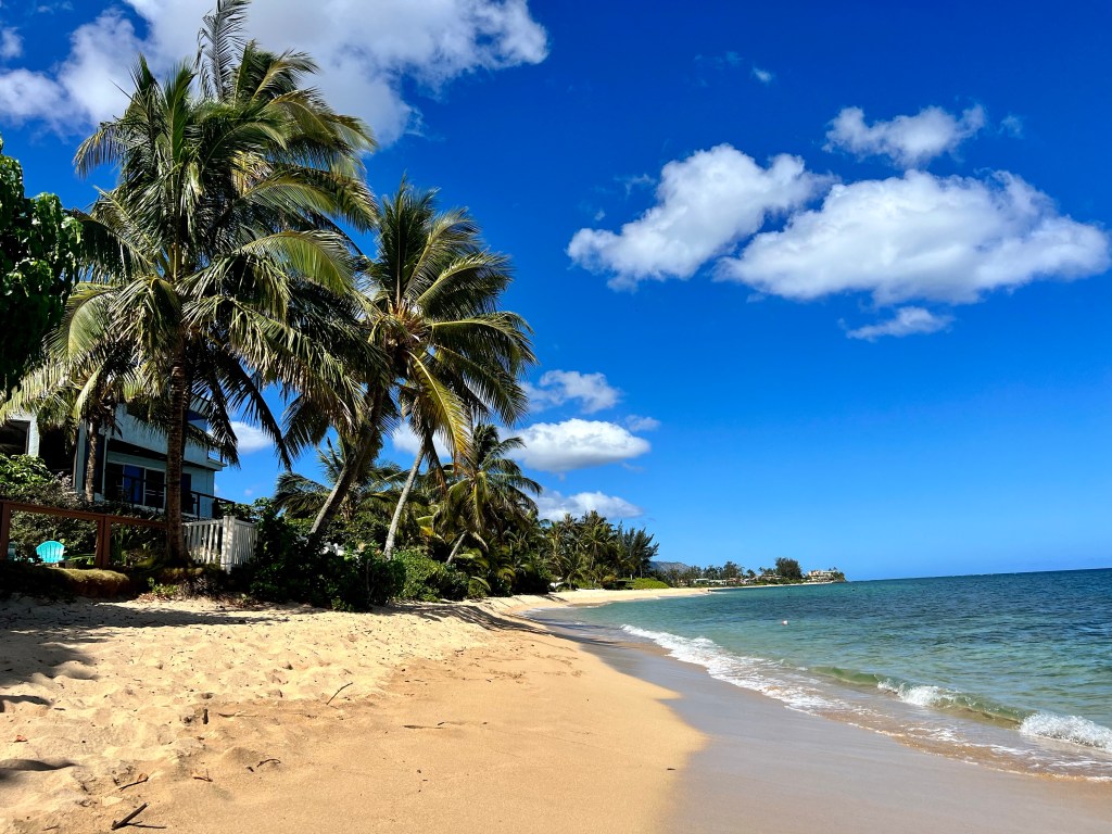 Nun aber wieder zurück zu unseren letzten Tagen auf O‘ahu. Mit dem Mietwagen fuhren wir die Ostküste hoch und besuchten einige Aussichtspunkte. Unter anderem Drehorte für den Film Jurassic Park. Wir entdeckten einen kleinen Strand, wo praktisch keine Touristen waren und verbrachten dort einige Stunden.