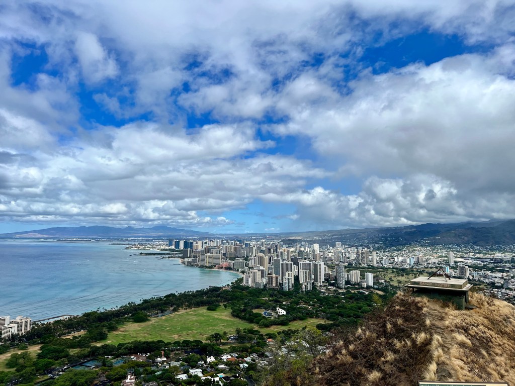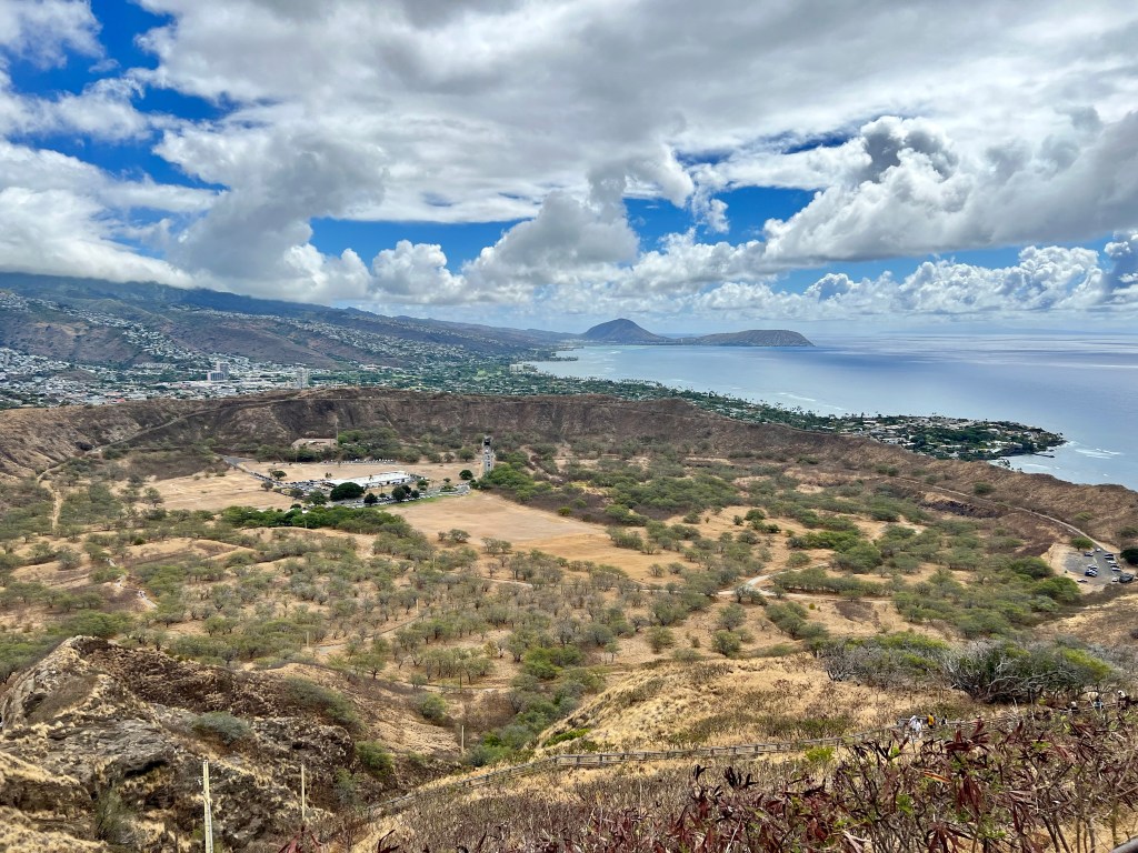 Den letzten Tag starteten wir mit einer Wanderung auf den Diamond Head. Der Diamond Head ist ein Vulkankrater nahe der Stadt Honolulu. Für die Wanderung zur Aussichtsplattform muss man durch einen Tunnel in den Krater, diesen dann durchqueren und auf der anderen Seite den Krater hochlaufen. Von oben hat man einen schönen Ausblick auf Honolulu. Eine kurze und sehr touristische Angelegenheit.