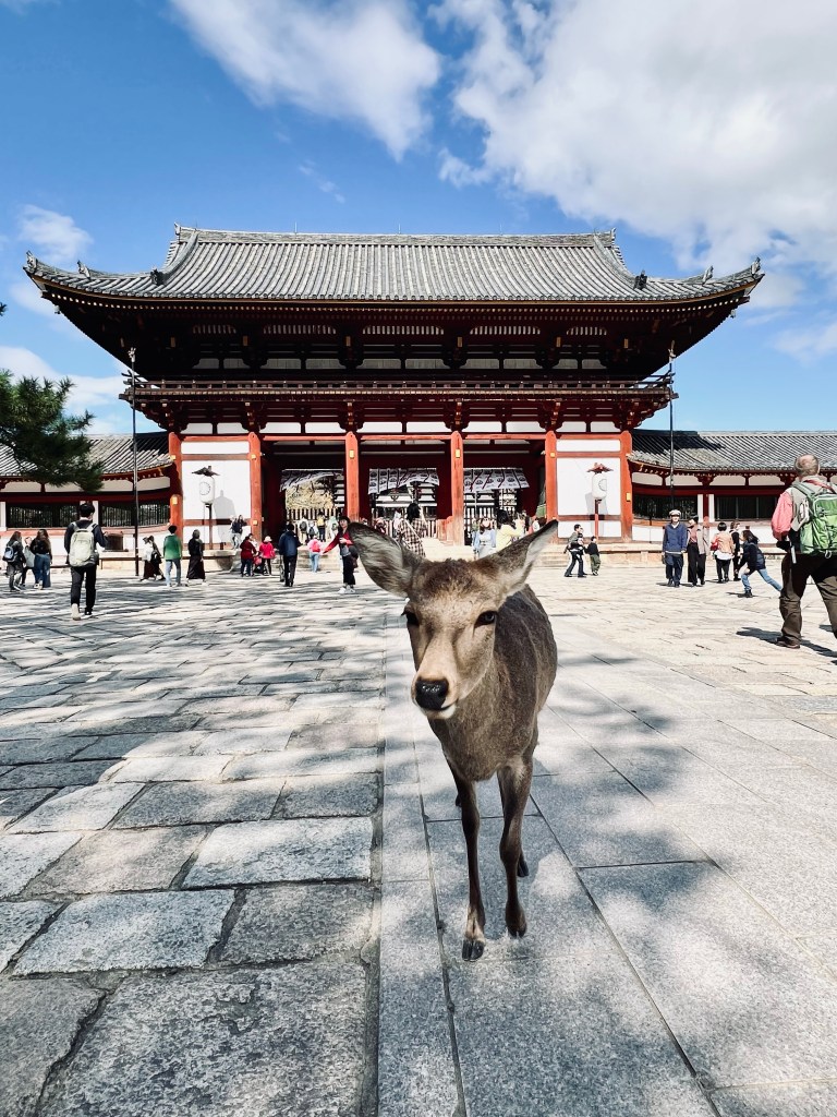 Nach dem Abstecher ins Landesinnere, brachten wir das Auto in Kanazawa wieder zurück und fuhren mit dem Zug nach Kyoto. Kyoto gilt als eine der schönsten Städte von Japan. Uns hat die Stadt aber irgendwie nicht zu 100% überzeugt. Die Sehenswürdigkeiten (haupsächlich Tempel und Schreine), welche wir besuchten, waren von Touristen überlaufen. So machten wir uns auch schon bald auf den Weg nach Osaka, mit einem kurzen Abstecher nach Nara, wo es in einem Park Rehe gibt, welche frei herumlaufen und sich verbeugen, wenn man ihnen einen Keks zum essen gibt.